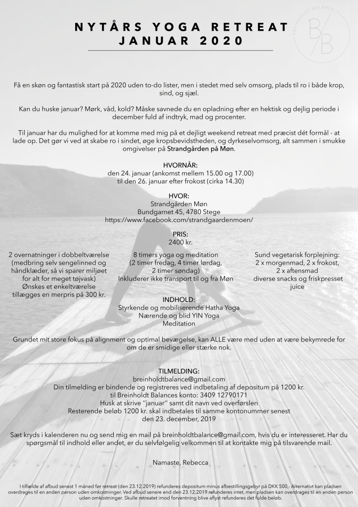 Forårs yoga retreat Maj 2020: AFLYST Nytårs yoga retreat Januar 2020: Udsolgt Del dette: Share on X(Åbner i et nyt vindue) X Del på Facebook(Åbner i et nyt vindue) Facebook Like Henter...